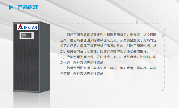列间空调是放置在服务器机柜柱间的装置,靠近热源,直...